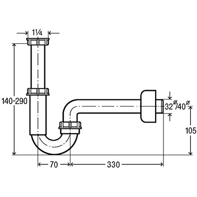 SIFONE A "S" ORIENTABILE 5611K PP B/CO LAVABO Ø 1.1/4"X32 MM
